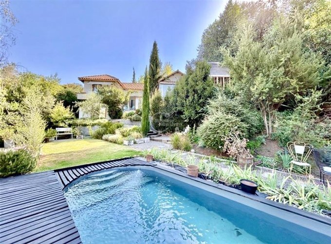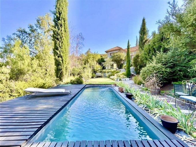Preciosa y acogedora casa con una maravillosa vista , orientación oriente, espectacular ubicaciòn en el Condominio de Club de Golf Dehesa, lindo jardin con piscina y Taller.