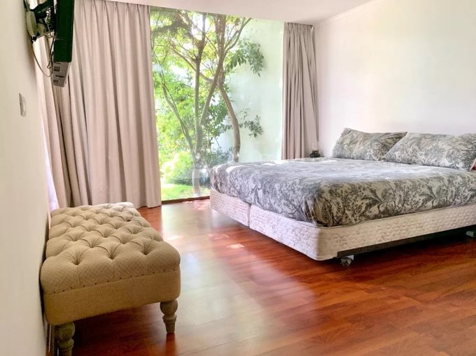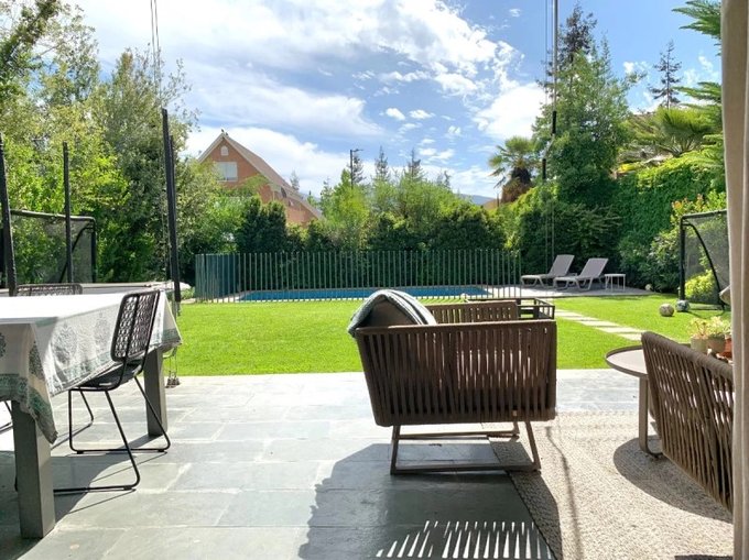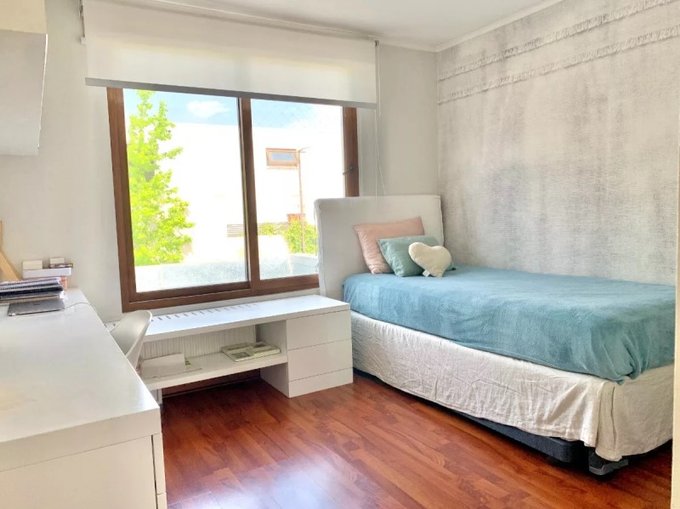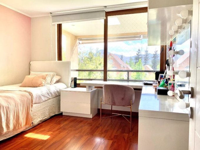 A pasos de carabineros , colegios y del Strip center de Patio Andino, cercano a supermercado Jumbo y gimnasio. Colegios Craighouse School, Los Alerces, Monte tabor, Huinganal, Mayflower. Con 5 habitaciones más 1 dormitorio de servicio , 4 baños y 4 estacionamientos, es ideal para familias grandes y home office. Cuenta con quincho y bodega, una gran piscina , la cuál es temperada en invierno. Además, tiene una excelente iluminación natural. Casa en condominio con seguridad 24/7, con guardias y acceso controlado destaca por su tranquilidad y hermosos paisajes naturales para andar en bicicleta, perfecta para disfrutar en familia. No pierdas la oportunidad de vivir en este maravilloso lugar!