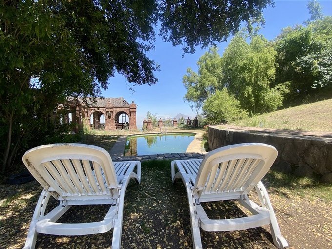 Piscina y gran quincho techado con vista hacia La Dehesa.
