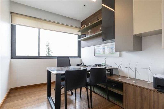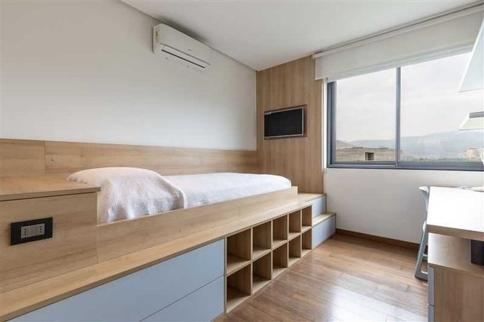 Segundo piso con 4 Suites, sala de estar, escritorio y sala de estudios que se distribuye con amplio pasillo central con barandas de vidrio templado lo que genera amplitud, luminosidad y vista a espacios comunes.