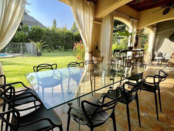 Living y comedor separados, ambos accesos con puertas francesas, salen a gran terraza, quincho, horno barro, jardín, piscina