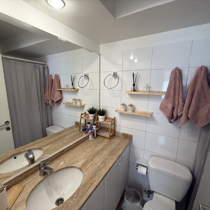 Distribución ideal: 2 dormitorios y 2 baños, incluyendo principal en suite con cama king , y segundo dormitorio con dos camas de 1 plaza y 1 1/2 plaza . Baño completo en pasillo. Cocina cerrado y una amplia loggia. Espacios integrados a un living-comedor cómodo y funcional. Terraza exquisita con orientación oriente, vista interior a áreas verdes y malla de protección para mayor seguridad principalmente a los pequeños de la casa.