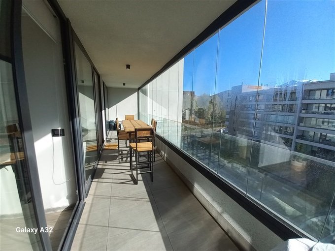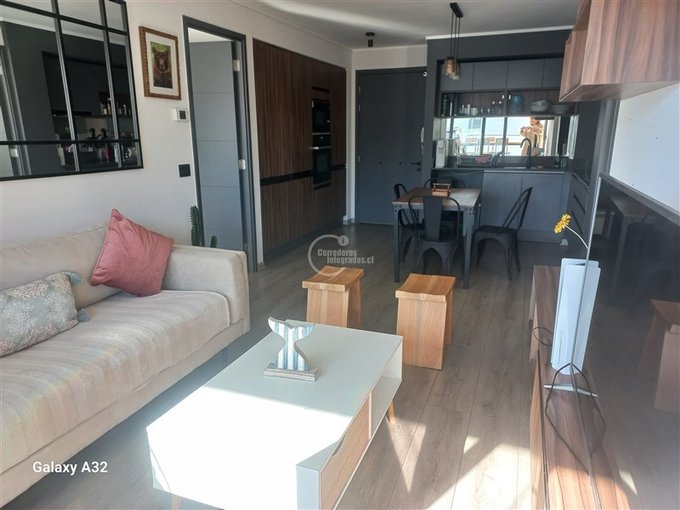 Cocina amoblada y equipada, integrada, amplio living, dormitorio principal en suite con w-closet, 2 dormitorio en suite un poco mas pequeño, amplia terraza que recorre el Dpto. Dos estacionamientos,una bodega, el edificio cuenta con estacionamiento visitas, piscina, gimnasio, sala multiuso, sistema de alimentación para vehículos eléctricos,lavandería de perros.