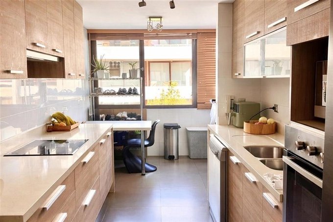 - Gran hall de entrada, con moderna cocina, completamente equipada con encimera eléctrica, horno empotrado y microondas