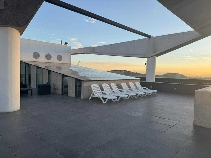 Edificio equipado con quincho, piscina panorámica en azotea, sala de reuniones, lavandería con lavadora y secadora, conserjería 24/7.