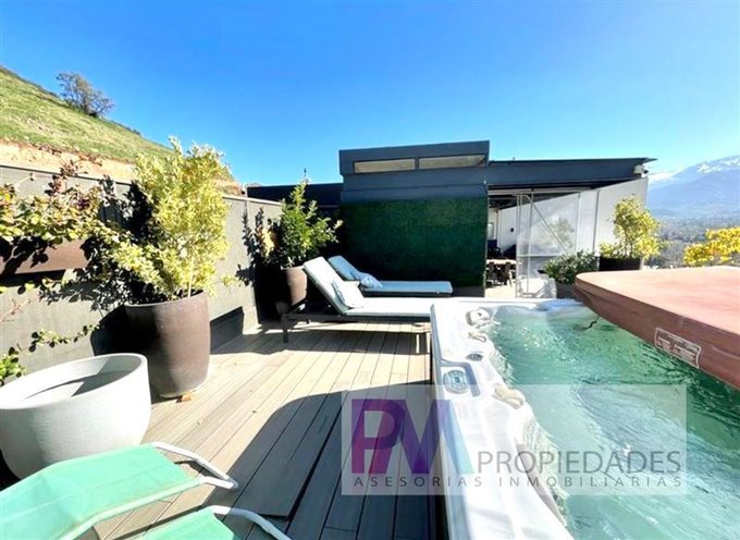 Exclusivo duplex de 180 m2 útiles + INCREIBLE DESPEJADA ( 6 mts. dormitorio principal ) y la otra de 25mts hacia el valle, + un gran Quincho en azotea (de 100m2) jacuzzi, y deck, con total privacidad, la mejor vista totalmente despejada dia y noche hacia valle de los Trapenses y Cordillera de los Andes.-