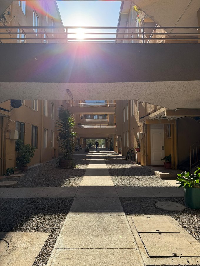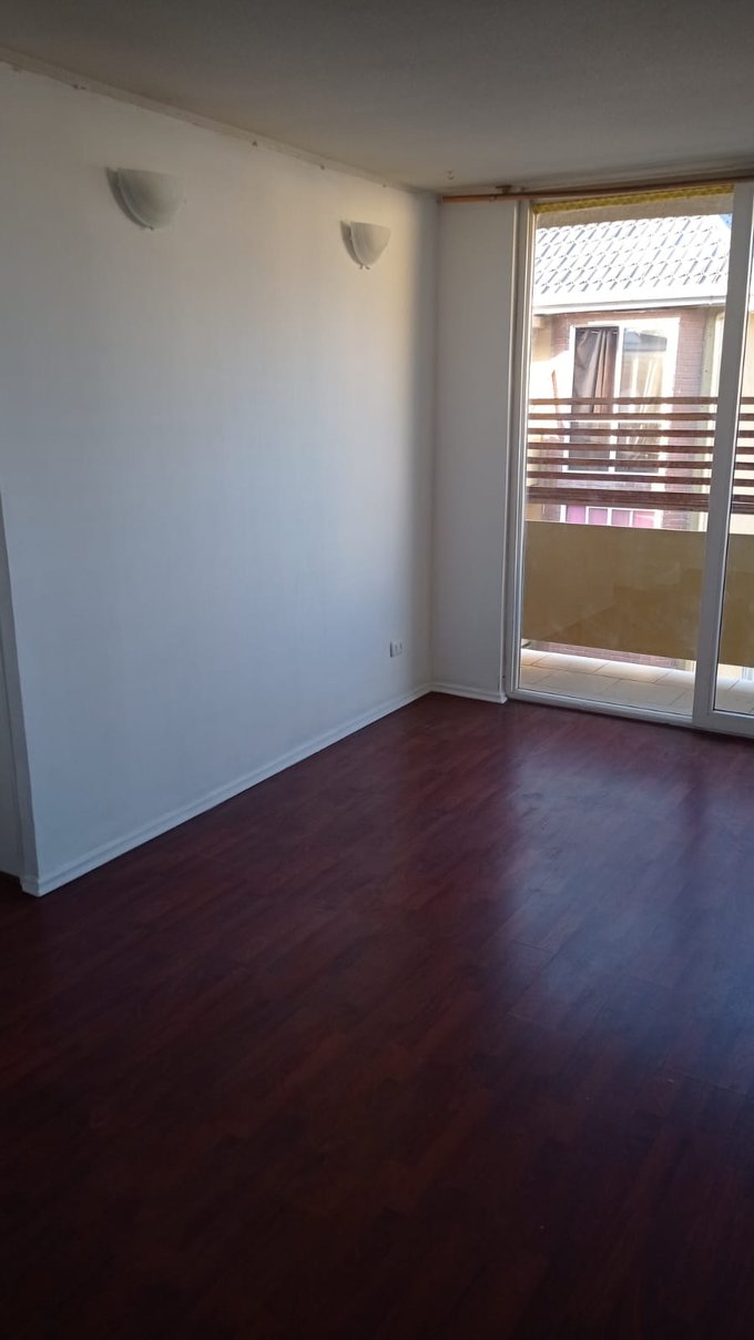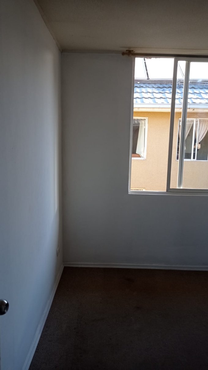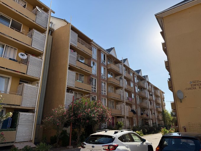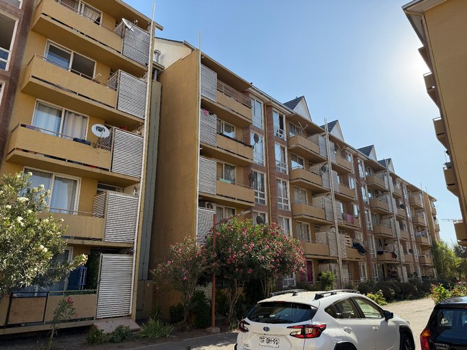 Este departamento se ubica en un conjunto residencial, "Edificio Maipú" Condominio José De San Martín", con torres de 5 pisos, rodeado de áreas verdes y estacionamientos exteriores. La propiedad cuenta con una superficie total de 58 m² y una superficie útil de 54 m², distribuidas en tres dormitorios y un baño. Los espacios interiores presentan piso flotante, cerámicas en cocina y baño, con ventanas de termopanel que permiten la entrada de luz natural. El baño está equipado con tina, lavamanos y WC, con terminaciones en cerámica. La cocina está presente en el departamento, con acceso a un pequeño a logia. El edificio permite mascotas, lo que lo hace adecuado para quienes buscan un hogar que acepte animales. No dispone de bodega. El entorno del conjunto ofrece caminos peatonales y vegetación, además de estacionamiento para residentes.