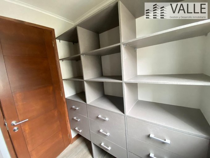 Dormitorio principal, walk-in closet y home office, con piso vinílico tipo madera.