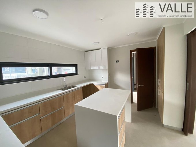 Cocina amoblada y mesón central.