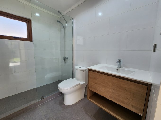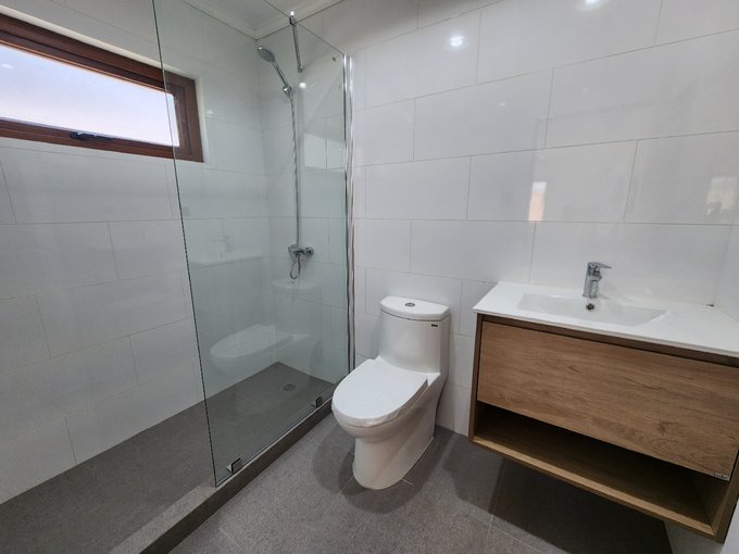3 baños, 2 de ellos completos con shower door mampara cristal. Pisos baños porcelanato.