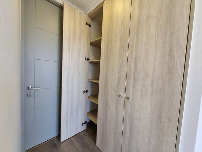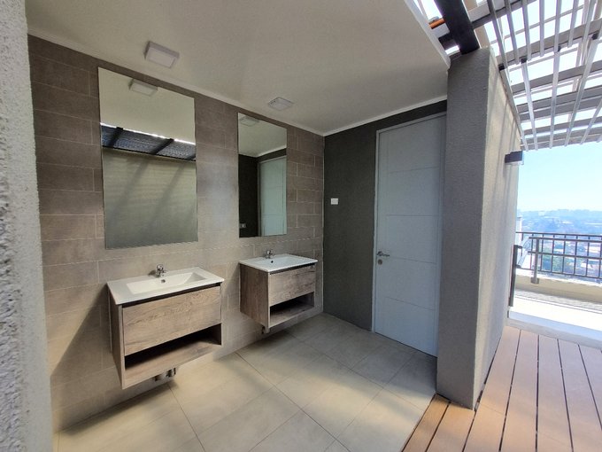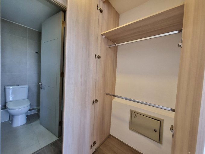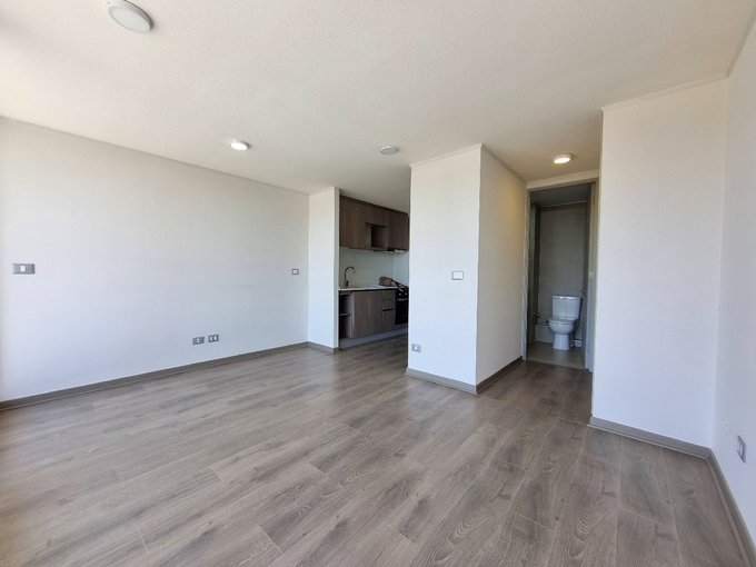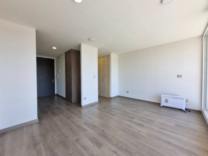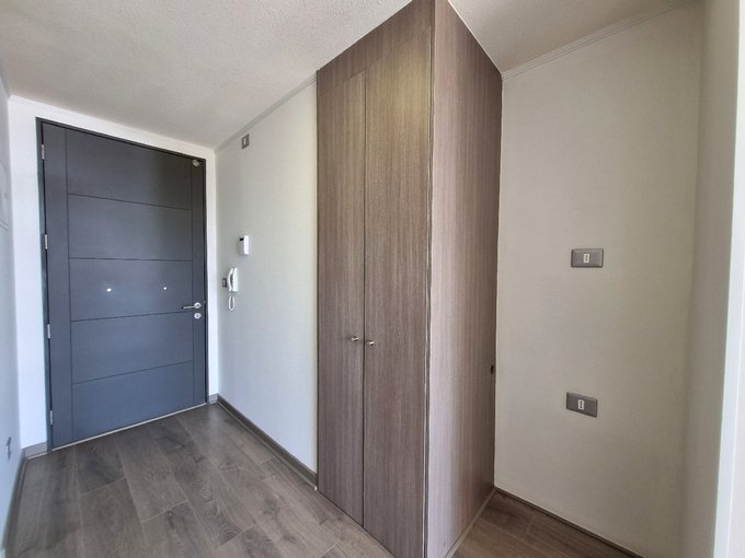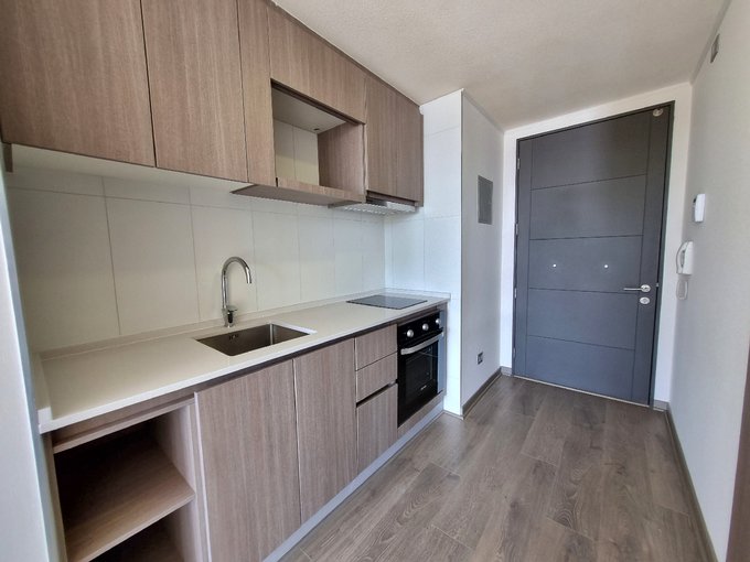 Este departamento se ubica a pasos del metro Quilín. Cuenta con una superficie total de 33 m² aproximados distribuidas en un ambiente principal con acceso a un balcón con orientación poniente, que ofrece vistas despejadas al entorno y permite disfrutar del aire libre. El espacio interior integra una cocina equipada con muebles de diseño contemporáneo, horno empotrado y suficiente capacidad de almacenamiento, junto a un baño completo con ducha con box de vidrio. El departamento dispone de una bodega y estacionamiento.
