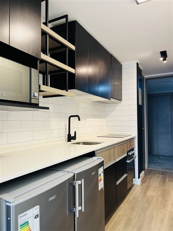 Depto Incluye: Base para cama de 2 plazas. Refri. Mesa y sillas. Cortinas Roler y luminarias
