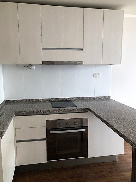 36 m2 totales (aprox.), distribuidos en living comedor con acceso a balcón, cocina americana amoblada y equipada con encimera vitrocerámica, horno y campana, cubiertas de granito, dormitorio con baño en suite con conexión a lavadora. El departamento incluye roller.