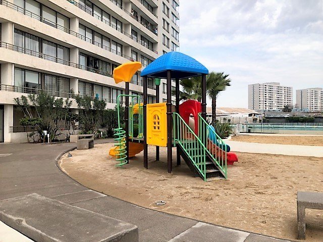 El edificio además de la laguna, cuenta con lindas arreas verdes con senderos de paseo y juegos infantiles, salas multiuso, gimnasio, quinchos, bicicleteros y estacionamientos de visitas.