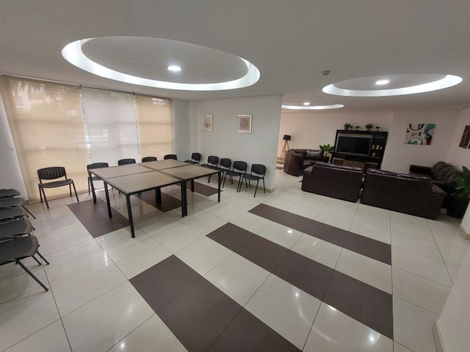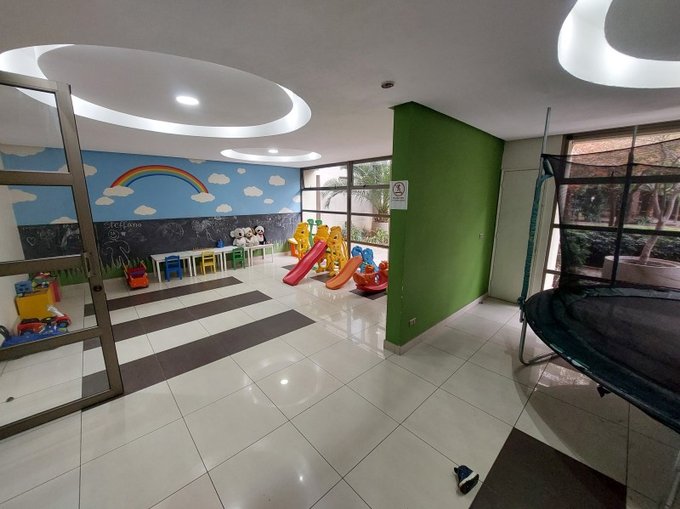 Edificio tranquilo, conserjería las 24 horas, cámaras de seguridad, salón de juego infantil, amplias áreas verdes con caminerías y linda pérgola con bancas en los alrededores muy agradables espacios, estacionamientos de visita, sala de eventos full equipada, dos piscinas, bicicletero, sala de pool equipada.