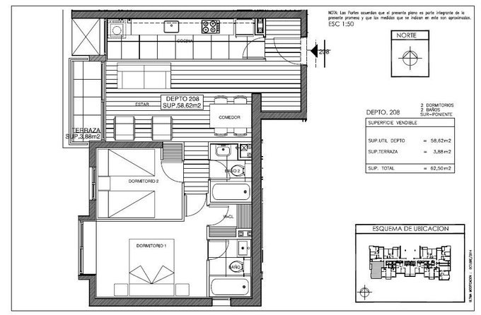 El departamento incluye estacionamiento y bodega.