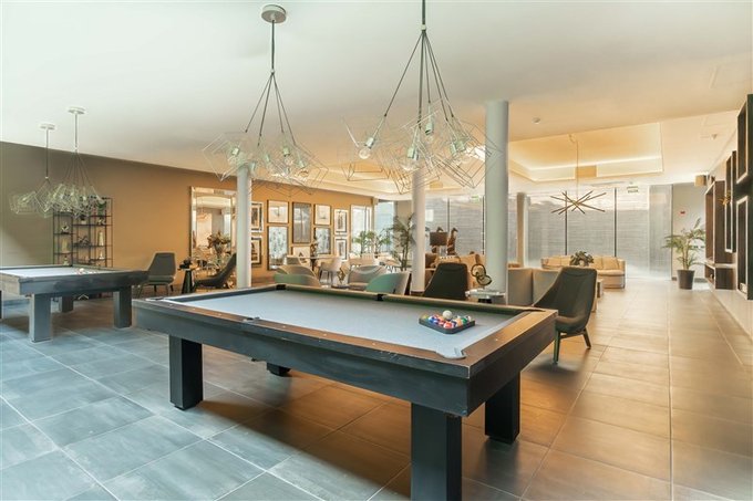 Sala de estar con TV y mesas de pool