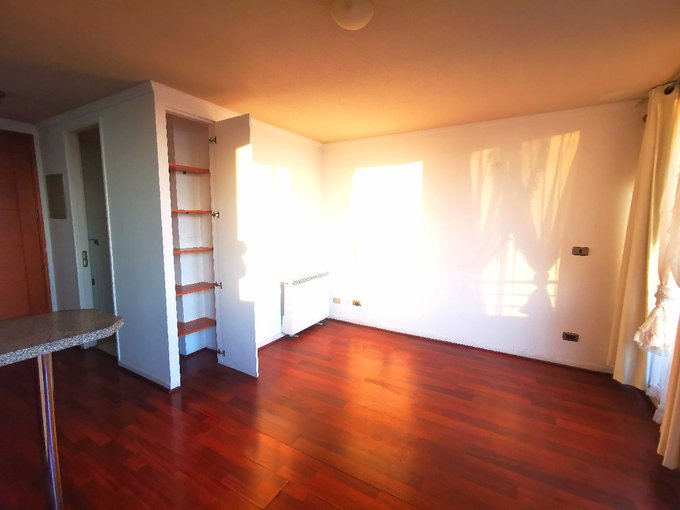 ProCasa 69041 Arrienda OPORTUNIDAD!! Departamento recién pintado, muy acogedor. Incluye lámparas y cortinas black-out. Lindo Departamento STUDIO 1 dormitorio 1 baño Balcón muy cómodo Ventanas TermoPanel (aíslan ruido y temperatura) Piso 14 Cocina abierta americana Conexión a lavadora Orientación Poniente Agua caliente por Termoeléctrico Calefacción eléctrica Gasto común $50.000 aprox.