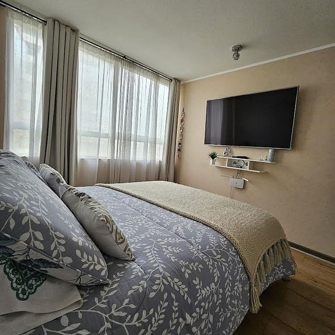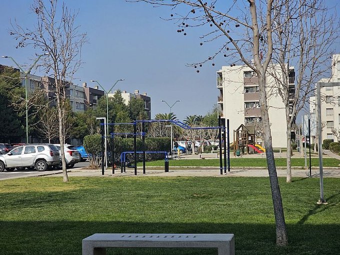 HURTADO PROPIEDADES ARRIENDA; Departamento recién remodelado en sector residencial, Condominio Monte Tabor, Maipú. Ubicado en tercer piso, 3 Dormitorios, 2 baños y estacionamiento, con accesos controlados 24x7, TAG para entrada de autos, Acceso a la torre con sistema de biométria, circuito cerrado de seguridad, frente a mall Arauco Maipú y Clínica Indisa, servicios de todo tipo, metro L5 (Monte Tabor y Del Sol), autopistas, colegios, Inacap, conectividad autopista Vespucio norte, Ruta 68, Ruta 78, Autopista central, Vespucio Sur, Costanera, a 5 minutos de mall plaza oeste, 10 minutos del aeropuerto. Condominio Equipado con piscina, sala multiuso, quinchos, bicicletero, senderos para trote, barra de calistenia, multicancha, juegos infantiles, áreas verdes y estacionamiento de visita