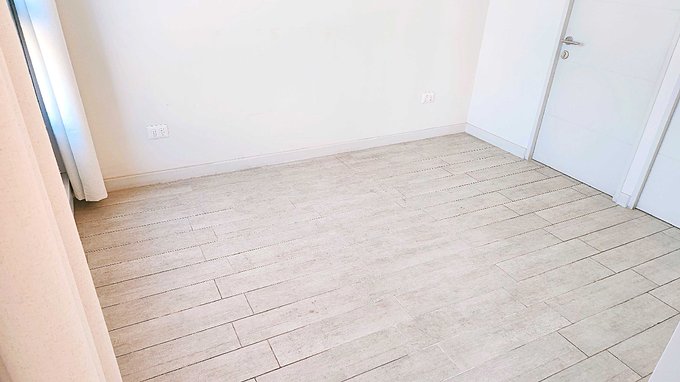 Piso porcelanato en todo el departamento. Cerámica en baño.