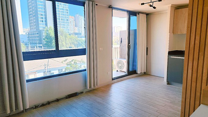 Todo el departamento cuenta con ventanas termopanel, lo que ayuda con la aislación del ruido y del frío. Cortinas y lámparas instaladas.