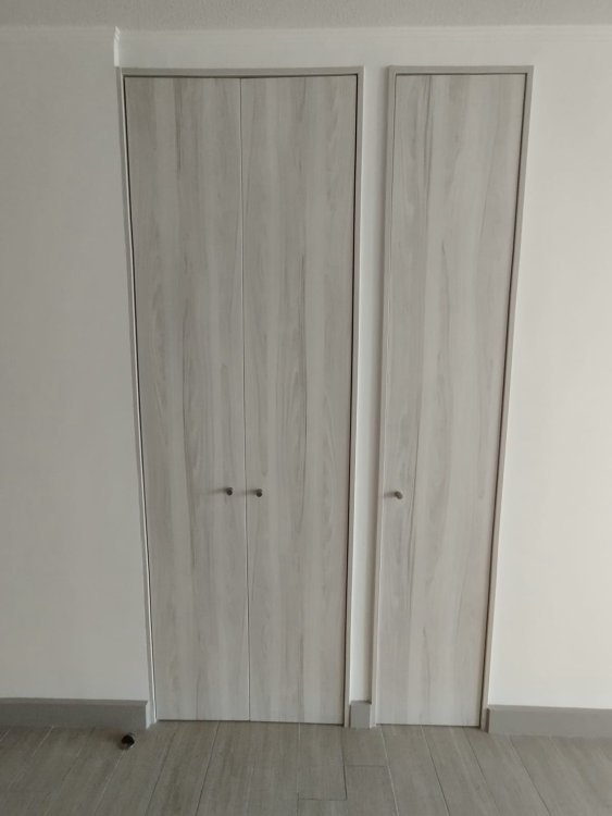 * Puerta de acceso enchapada en madera.