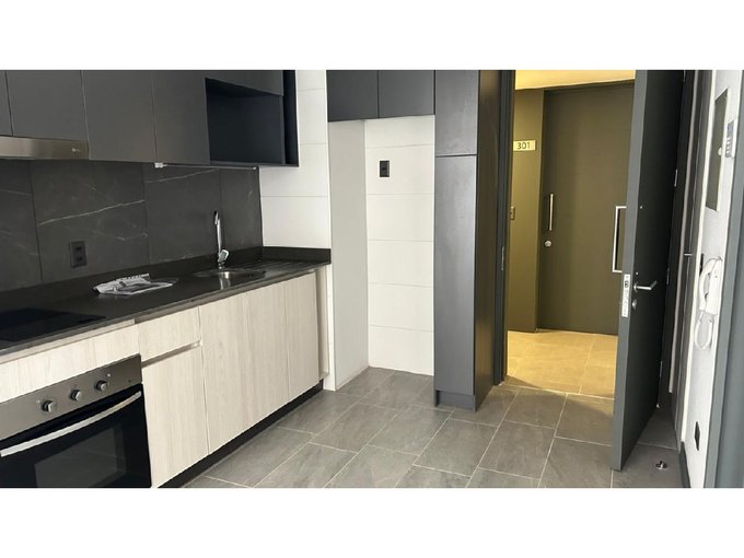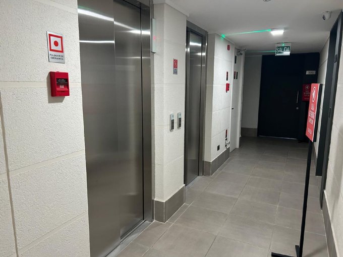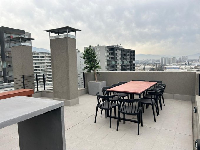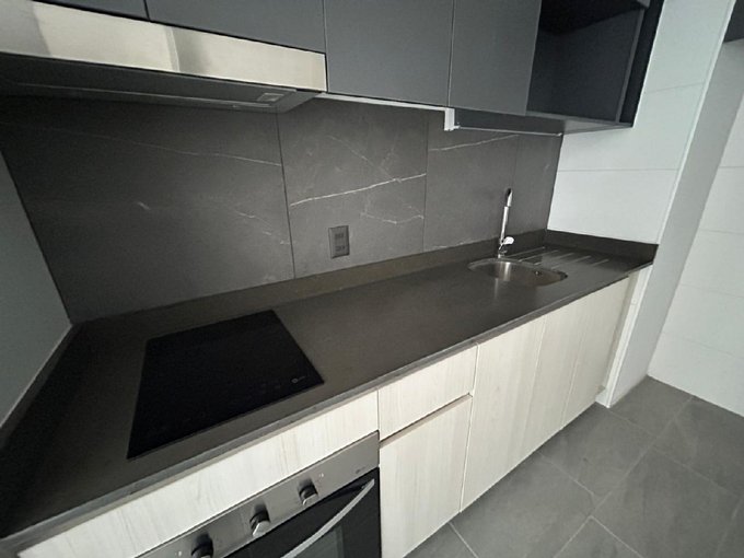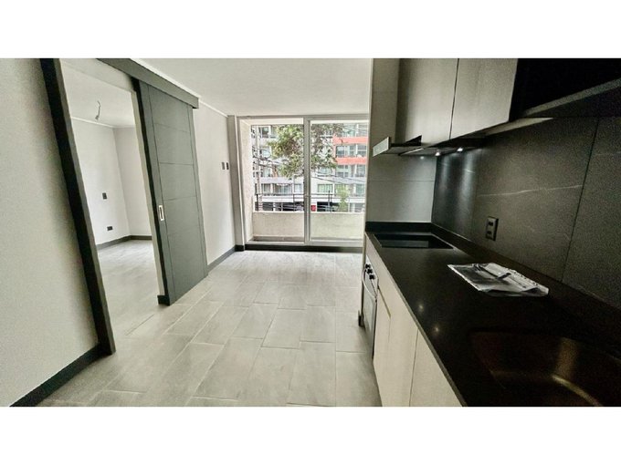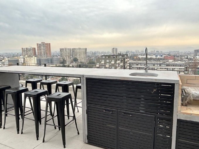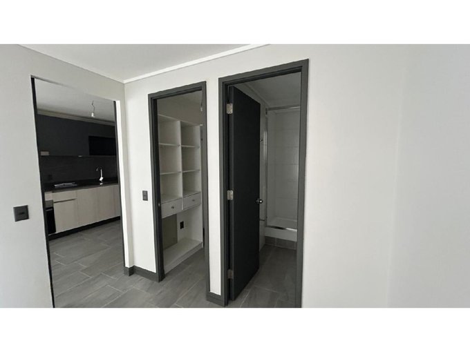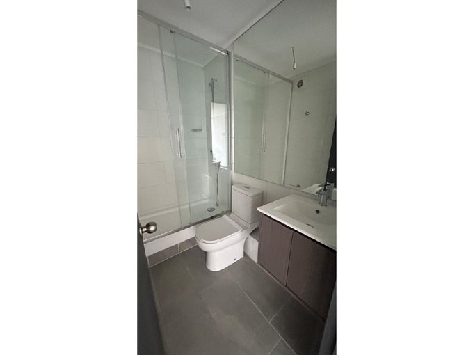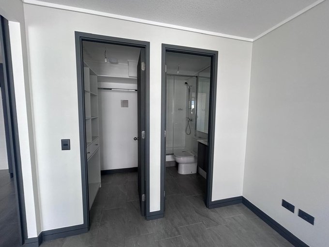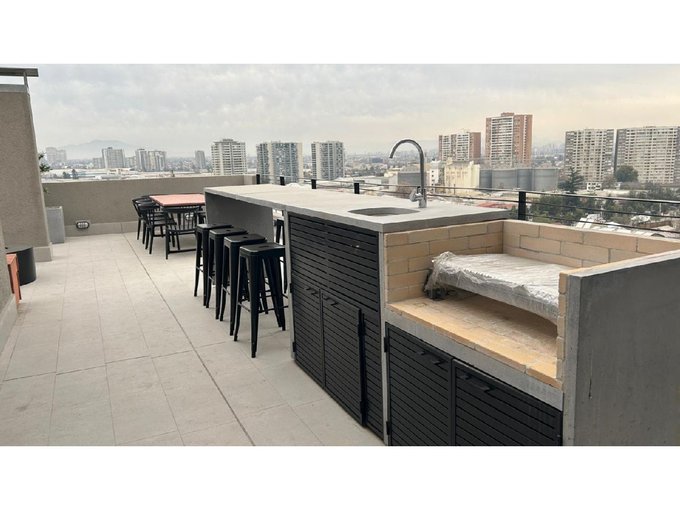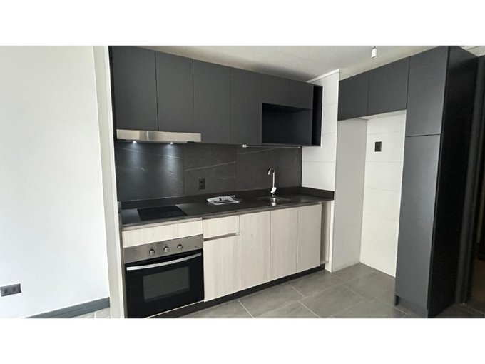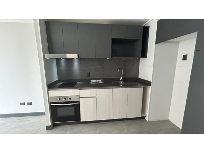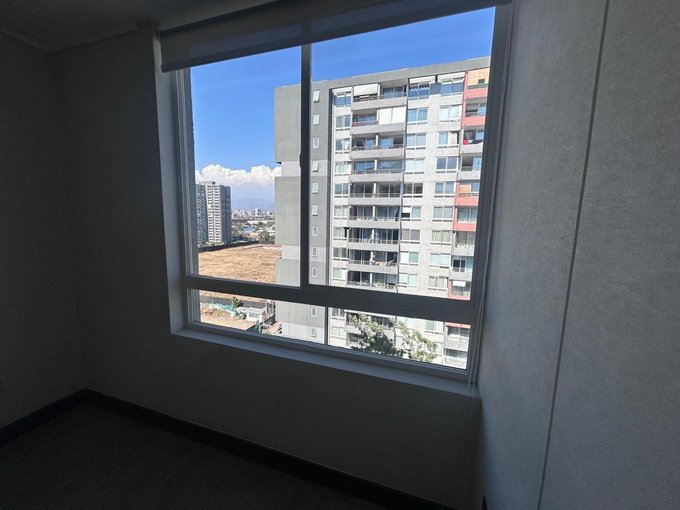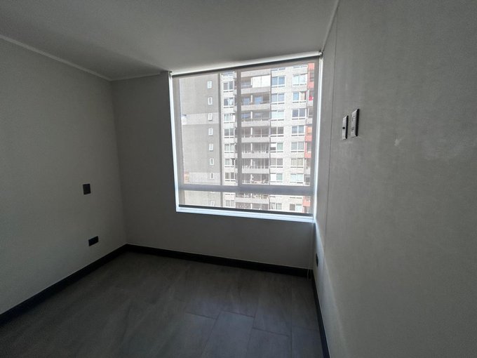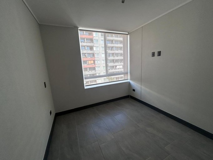 Departamento Nuevo en piso 9 orientación Poniente, cocina equipada con cubierta de cuarzo, cocina eléctrica vitrocerámica, horno y campana retráctil, piso Gres porcelánico en todos los deptos., conexión para lavadora, ventanas con marco PVC, baños con vanitorio loza moldeada y muebles suspendidos, enchufes reforzados para calefacción eléctrica, Acceso controlado las 24 horas, Circuito cerrado de TV, Alarmas en todas las puertas de acceso a dptos. y en perímetro de los dptos. hasta el piso 3.