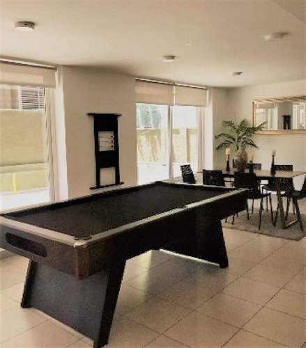 living/dormitorio, bañó completo con tina, cocina, integrada y equipada con refrigerador freezer , microondas", cocina encimera eléctrica con dos platos, campana, horno empotrado, cubierta de cuarzo, terraza, espacios comunes, piscina, 2 ,amplios quinchos, lavandería, gimnasio, amplia sala de uso múltiple con kitchenette, gimnasio, bicicletero asignado, gastos comunes aproximados $60.000 aproximado, seguridad permanente ,segundo piso, vista nororiente