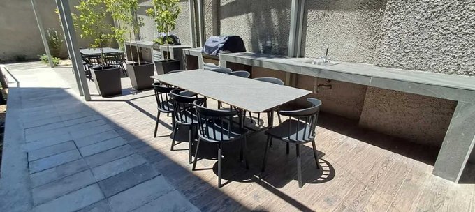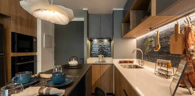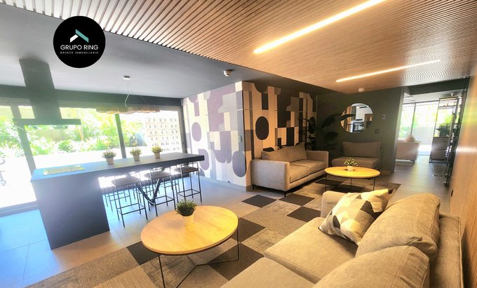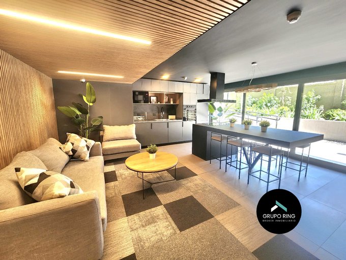El departamento ideal para parejas que les gusta vivir con estilo: cuenta con 1 dormitorio, 1 baño con shower door y ventilación natural, moderna cocina cubierta de cuarzo, equipada con encimera vitrocerámica, horno, campana y microondas. Livingcomedor luminoso con salida a amplia terraza y a jardín propio del departamento. Calefón individual y conexión a lavadora