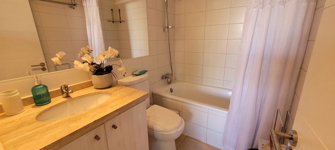 El departamento abarca 87 m construidos sobre una superficie total de 93 m. Se compone de 3 habitaciones y 2 baños completos. El inmueble está equipado con todo lo necesario para entrar a vivir.