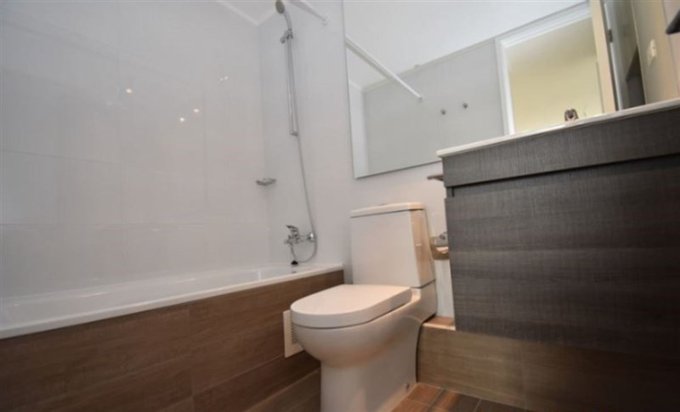 Piso porcelanato en baños y terraza.