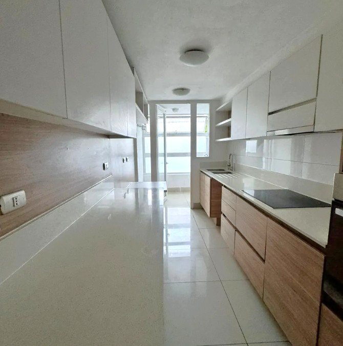 Este departamento esta ubicado en segundo piso cuenta con una superficie total de 114 m y una superficie útil de 100 m, distribuidos en: * 3 dormitorios Alcoba con principal en suite con walkin closet, los otros 2 con closet grandes. * 2 baños con tinas . * Home office pequeño * 2 estacionamiento subterraneos. * 1 Bodega * 2 balcones de termopanel con marco de PVC que aseguran un excelente aislamiento acústico y térmico.