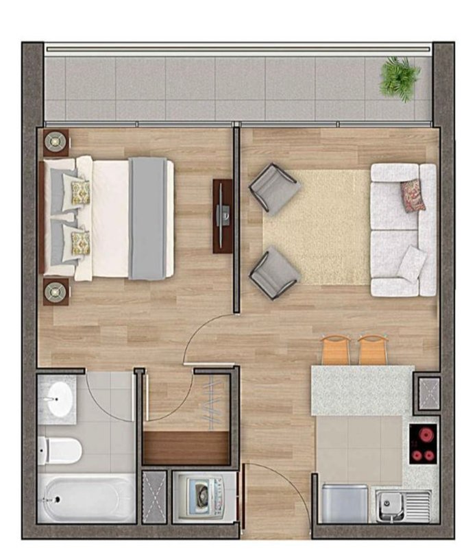 Moderno departamento de 32 m², ubicado en el 4° piso de un edificio seguro y bien mantenido, con orientación sur, lo que lo hace fresco y luminoso durante el día.