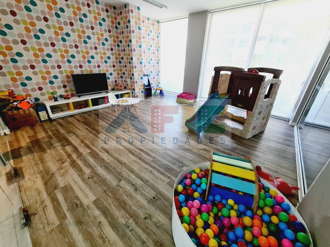 Emplazado en un condominio con numerosas áreas verdes, 2 plazas de juegos infantiles, salas de eventos, quinchos, gimnasio, piscina, accesos controlados con huellas, y seguridad 24 hrs.