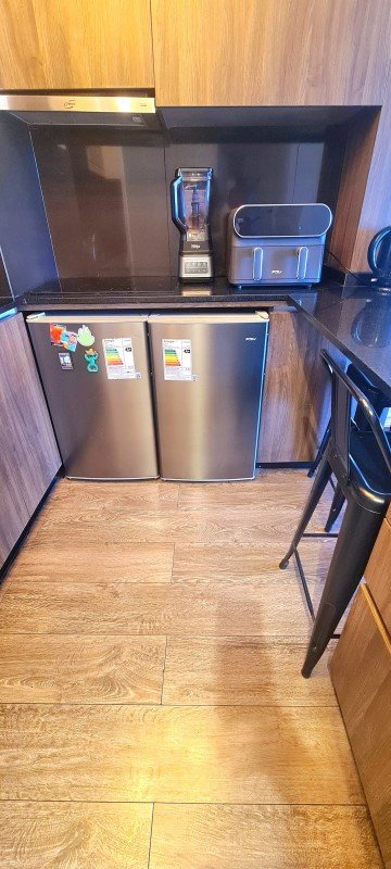 - cocina americana totalmente equipada (refrigerador-congelador-microondas-horno-encimera-campana)