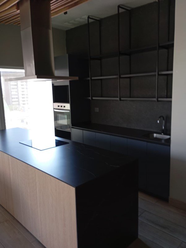 Sala de estar-comedor, cocina amoblada y equipada con mueble base de cubierta de Cuarzo, encimera vitroceramica, horno electrico, extractor de aire. Instalación para lavadora, mesa multi-uso movible. Piso Gres de porcelanato imitación madera. Baño en Suite. Balcon frente a la sala de estar. Barras de cortinas. alarma conectada a conserjería, agua caliente por termo electrico individual.
