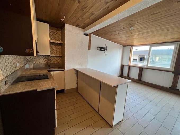 subimos las escaleras y llegamos a un recibidor , entramos y nos encontramos con un espacio adaptado y de super buen tamaño, donde tenemos la cocina y un espacio para living y comedor, exquisito.