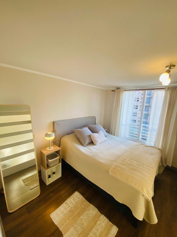Descubre tu nuevo hogar en el corazón de Ñuñoa! Este acogedor departamento está disponible para arriendo por solo $550.000 pesos, reajuste semestral. Con una ubicación privilegiada cerca del Metro Villa Frei, ofrece una excelente conectividad y acceso a los servicios que necesitas. Ñuñoa es conocida por su ambiente tranquilo y familiar, así como por sus amplias áreas verdes y oferta cultural. El departamento cuenta con 45 m construidos en una superficie total de 47 m, ofreciendo un espacio cómodo y funcional para tu estilo de vidaEste inmueble tiene orientación Nor-Poniente, lo que garantiza luz natural durante gran parte del día. Incluye Dormitorio en suite y un espacio ideal para descansar, si cocina es americana, amoblada y equipada. Los gastos comunes son aproximadamente 80,000 pesos e incluyen una variedad de comodidades que añaden valor a tu vida diaria: