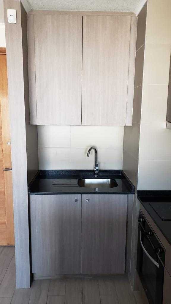 Disfruta de su cocina americana, con encimera de vitrocerámica, campana y horno, conexión para lavadora, living con rack tv giratorio, y complementa el espacio con una acogedora terraza de 3 m, donde podrás relajarte al final del día mientras disfrutas de las vistas de la ciudad. Además, cuenta con baño con tina y shower door, dormitorio con salida a terraza.