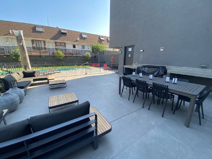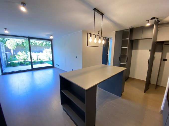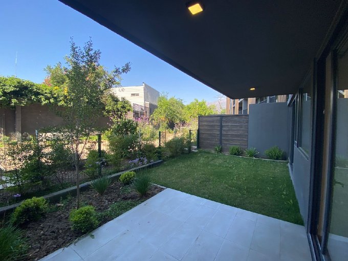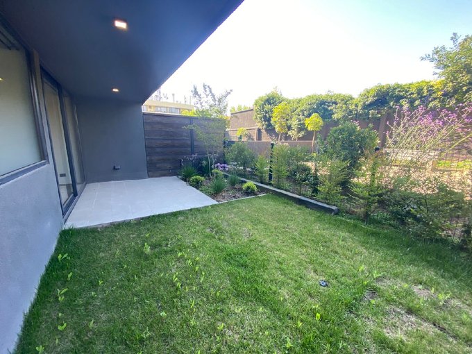 Oportunidad de departamento con patio como nuevo en arriendo, en el prestigioso sector de Ñuñoa. Con una superficie total de 109 Mt2, útil de 66,50 Mt2 y amplio patio de 42,50 Mt2, esta propiedad cuenta con dos dormitorios, y dos baños, dormitorio principal en suite con walking closet, salida independiente al patio, un estacionamiento y una bodega ambos subterraneo, orientación norte.