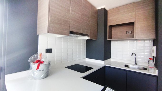 Cocina equipada con encimera vitrocerámica, horno eléctrico y campana.