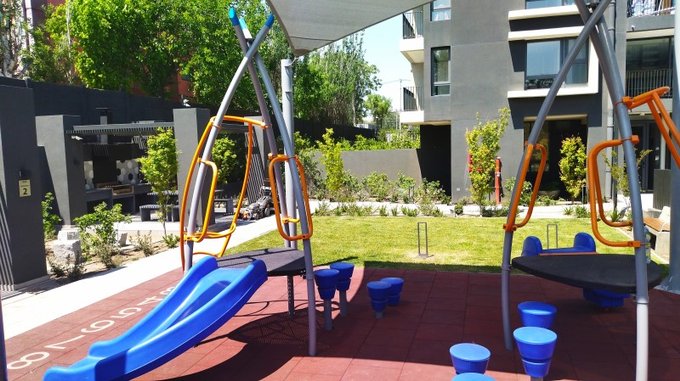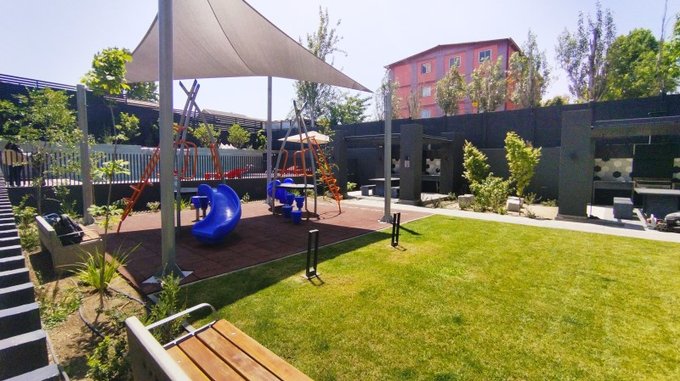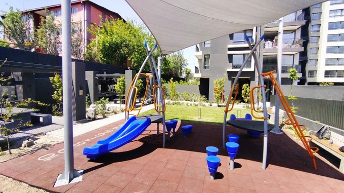 Espacios comunes: Piscina, Gym, Sala Eventos, Estac. visitas, Quinchos, Sala Cowork, juegos infantiles, áreas verdes