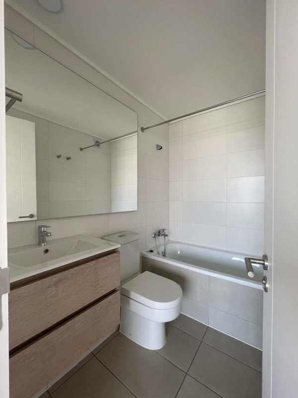 Se arrienda acogedor departamento nuevo, con Estacionamiento. Cuenta con vista despejada con orientación sur. Edificio de 13 pisos, a metros de la nueva línea 8 del metro, cercano a la línea 5 de metro Macul y Estadio Nacional. Cercano a futuro centro comercial, supermercados, colegios, con una excelente conectividad.