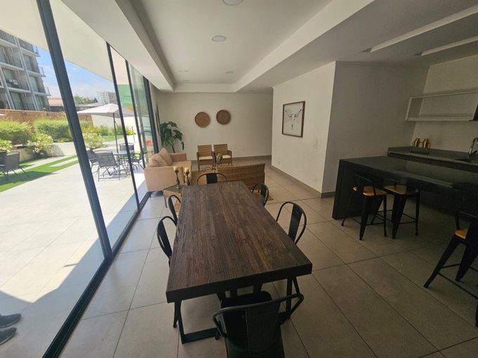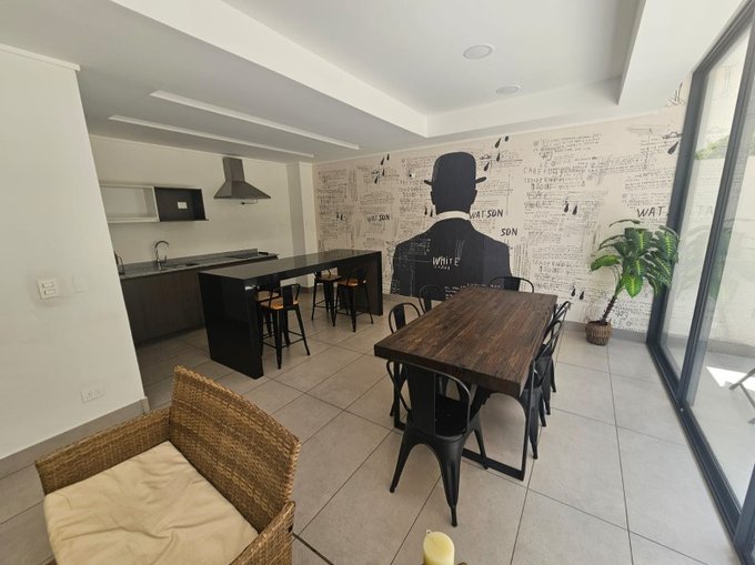 - Cocina americana totalmente amoblada y equipada con encimera eléctrica de vitrocerámica, horno eléctrico y campana retráctil .