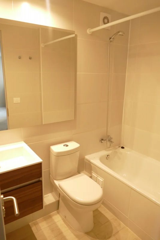 Agradable departamento de dos dormitorios (uno en suite) y dos baños, cocina americana. Se entrega con iluminación y cortinas.