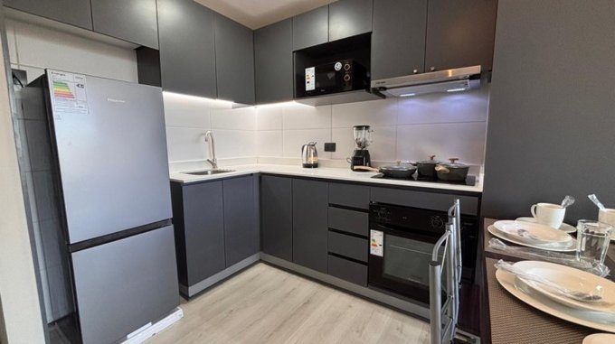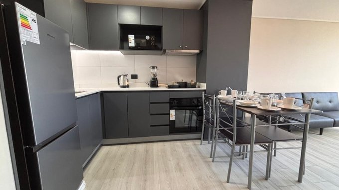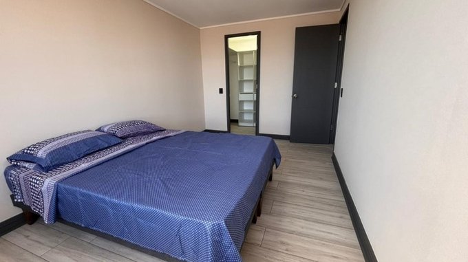El Departamento cuenta con 2 dormitorios, 1 baño, cocina tipo americana, amoblada y equipada con horno, encimera y campana, refrigerador, Sofá-Cama, Cama de 2 plazas y cama de 1,5. Con acceso al balcón.
