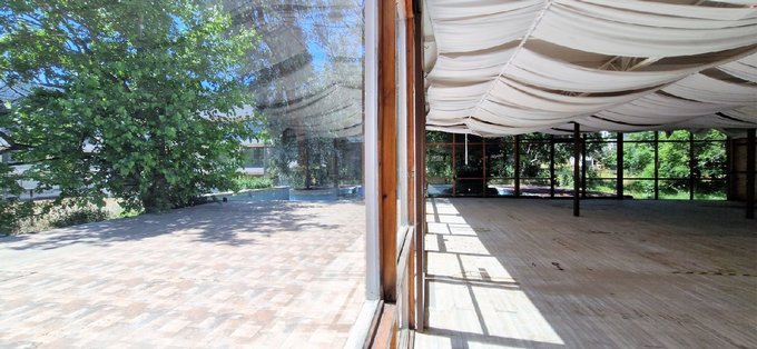 Espectacular terraza de 150 m2, que puedes cubrir con una estructura liviana y convertirla en un comedor al aire libre lleno de encanto.