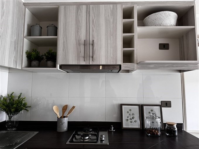 - Cocina integrada, incluye horno eléctrico, encimera, campana.