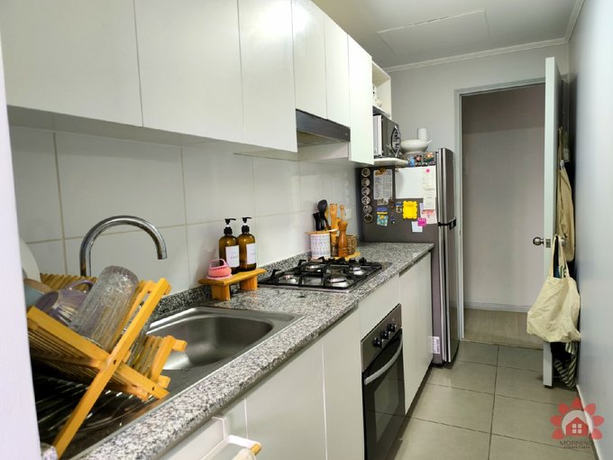 La cocina es independiente, ideal para mantener los espacios ordenados y separados del área de living-comedor. Además, incluye logia y calefont, aportando practicidad al día a día. Incluye estacionamiento, un atributo clave para tu comodidad.