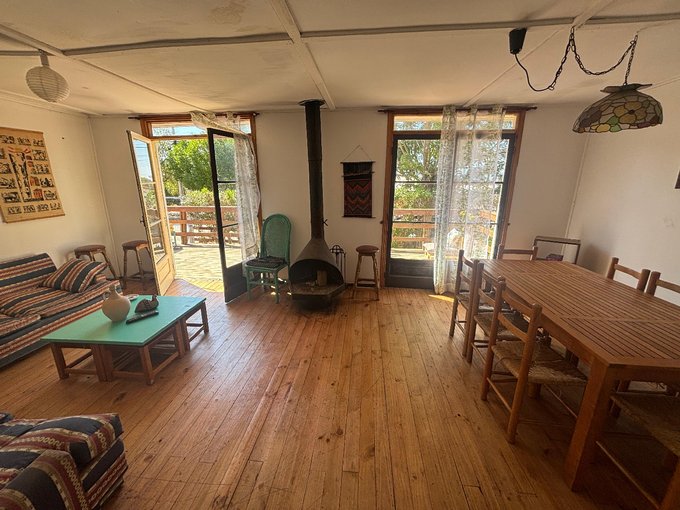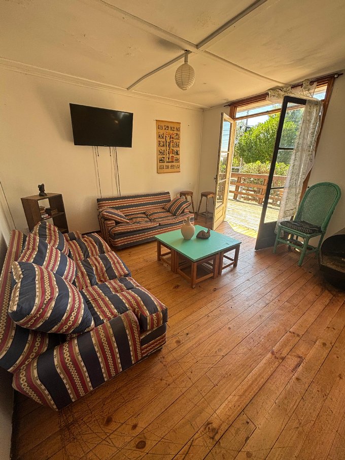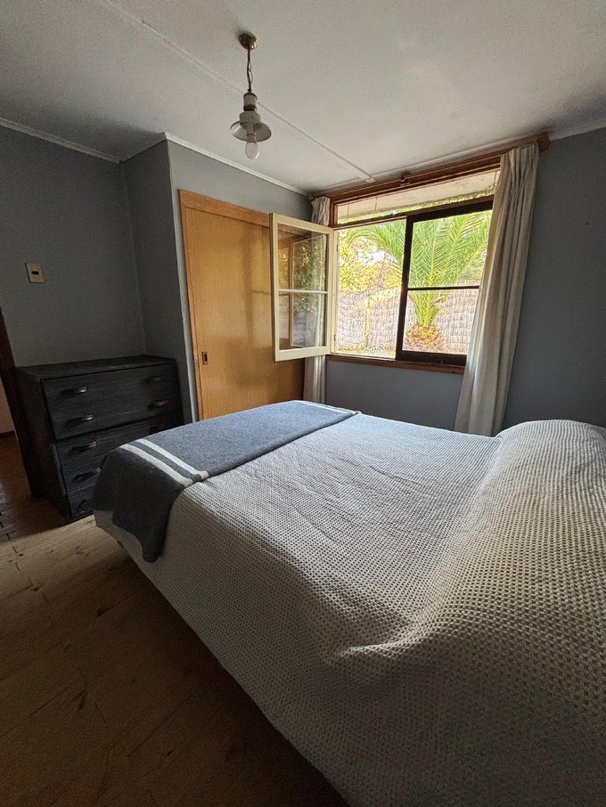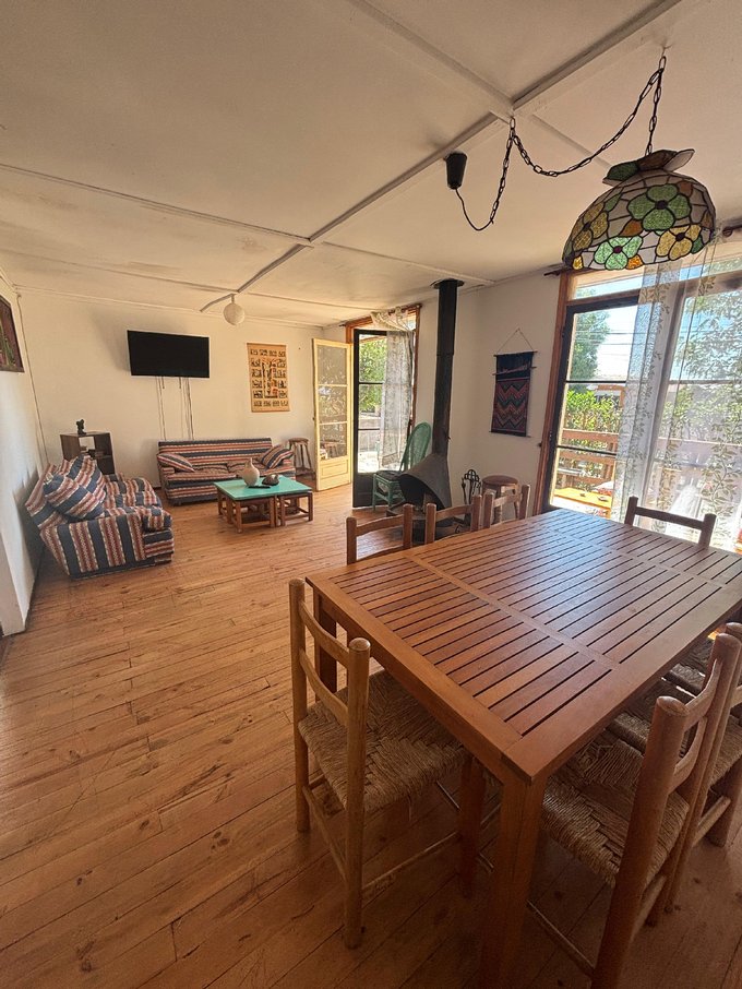 La propiedad es de 350m2, 91m2 útiles/edificados. Vivienda de madera calidad estándar. Cuenta con 4 dormitorios, 2 baños, cocina, living, comedor, bodega, quincho, amplia terraza de madera y capacidad para estacionar 3 autos y recibir a 10 personas.